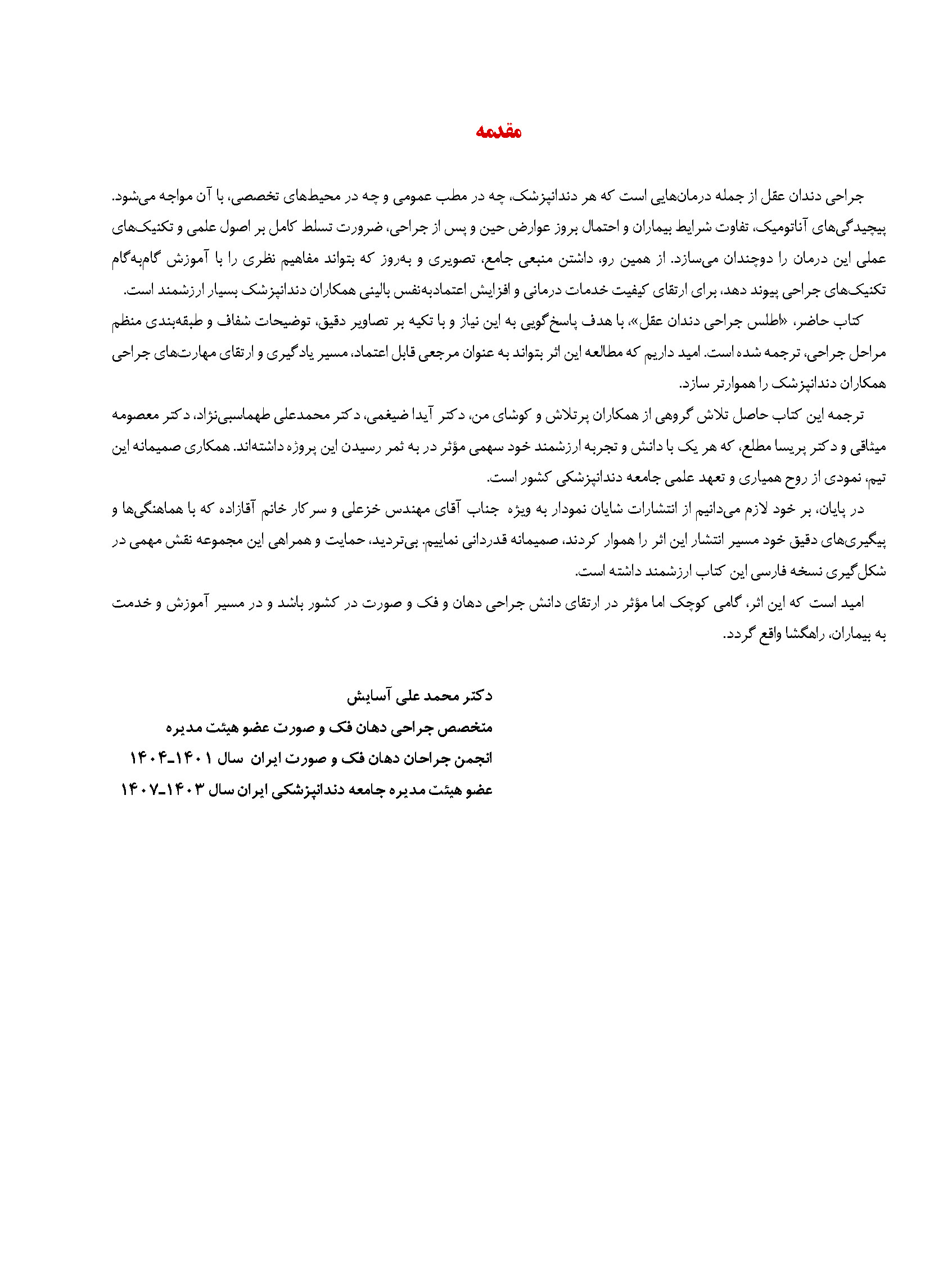 امید داریم که مطالعه این اثر بتواند به عنوان مرجعی قابل اعتماد، مسیر یادگیری و ارتقای مهارت‌های جراحی همکاران دندانپزشک را هموارتر سازد.