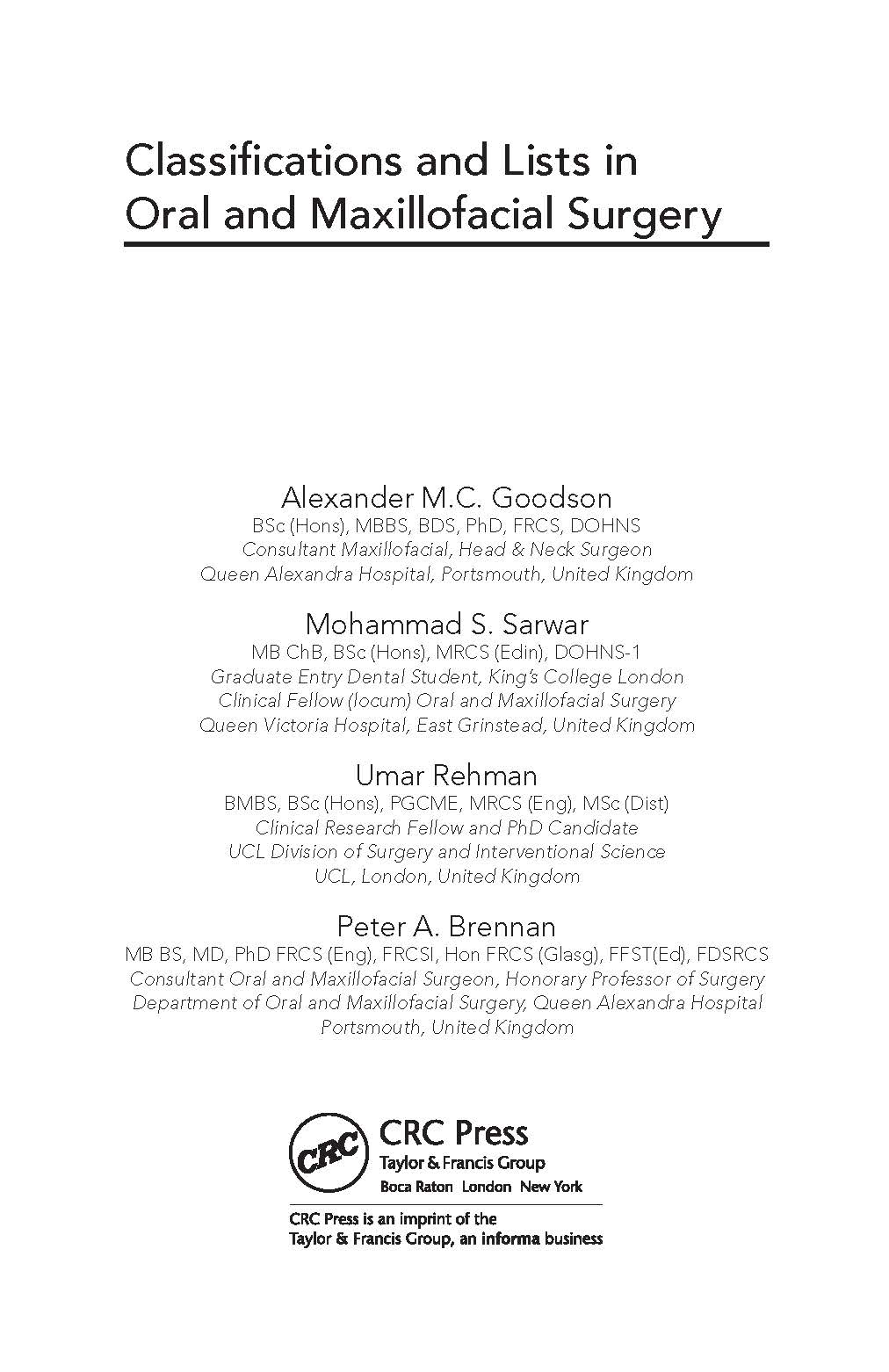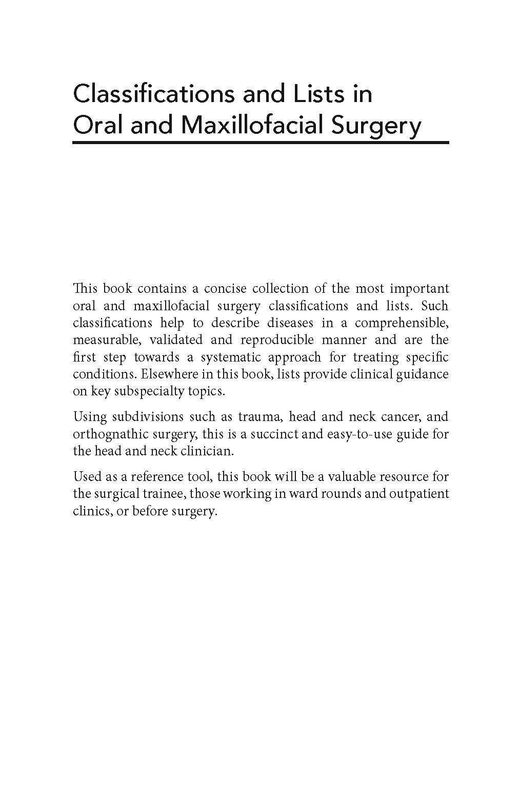 Classifications and Lists in Oral and Maxillofacial Surgery