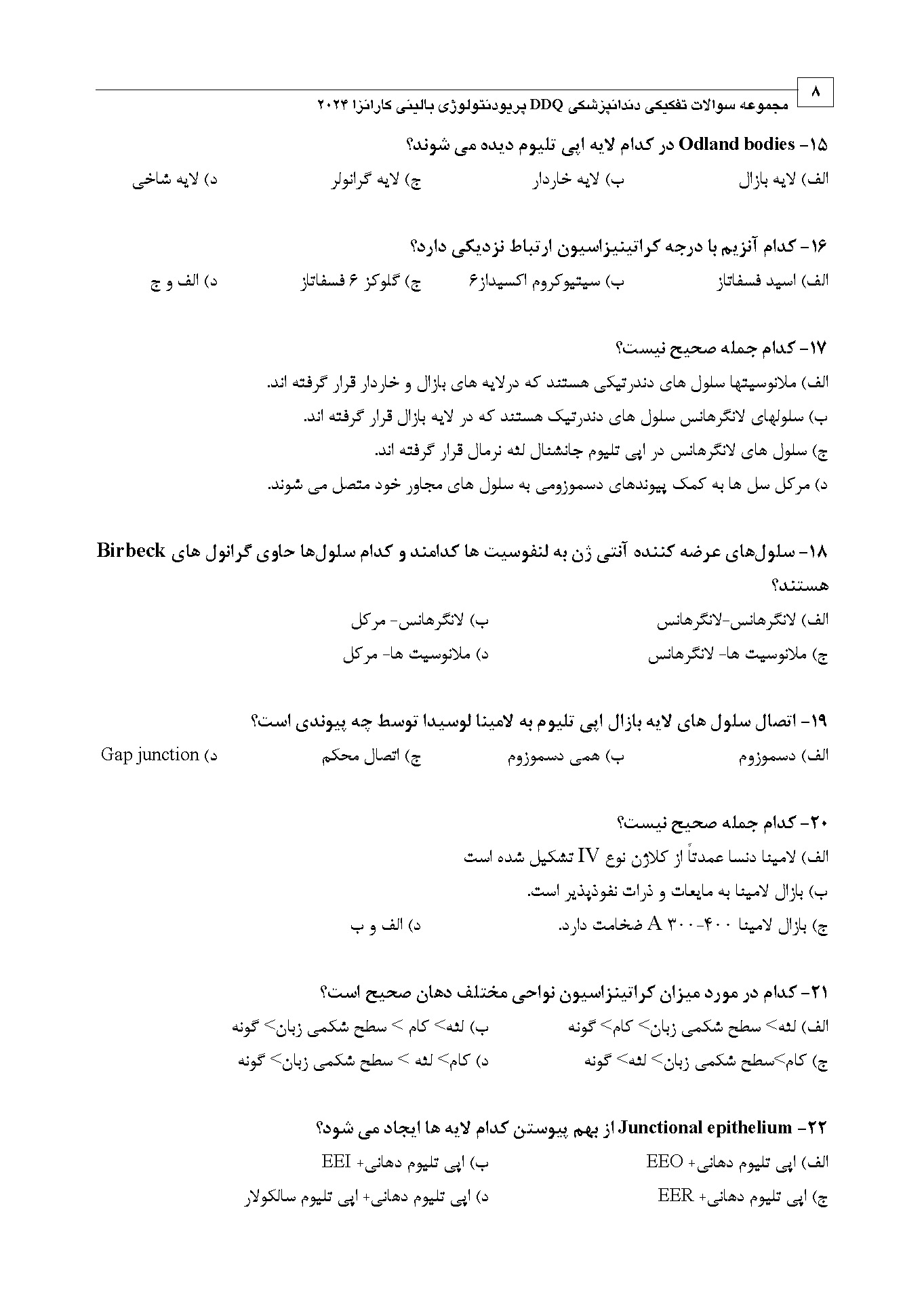 DDQ پریودنتولوژی بالینی کارانزا 2024 (مجموعه سوالات تفکیکی دندانپزشکی)