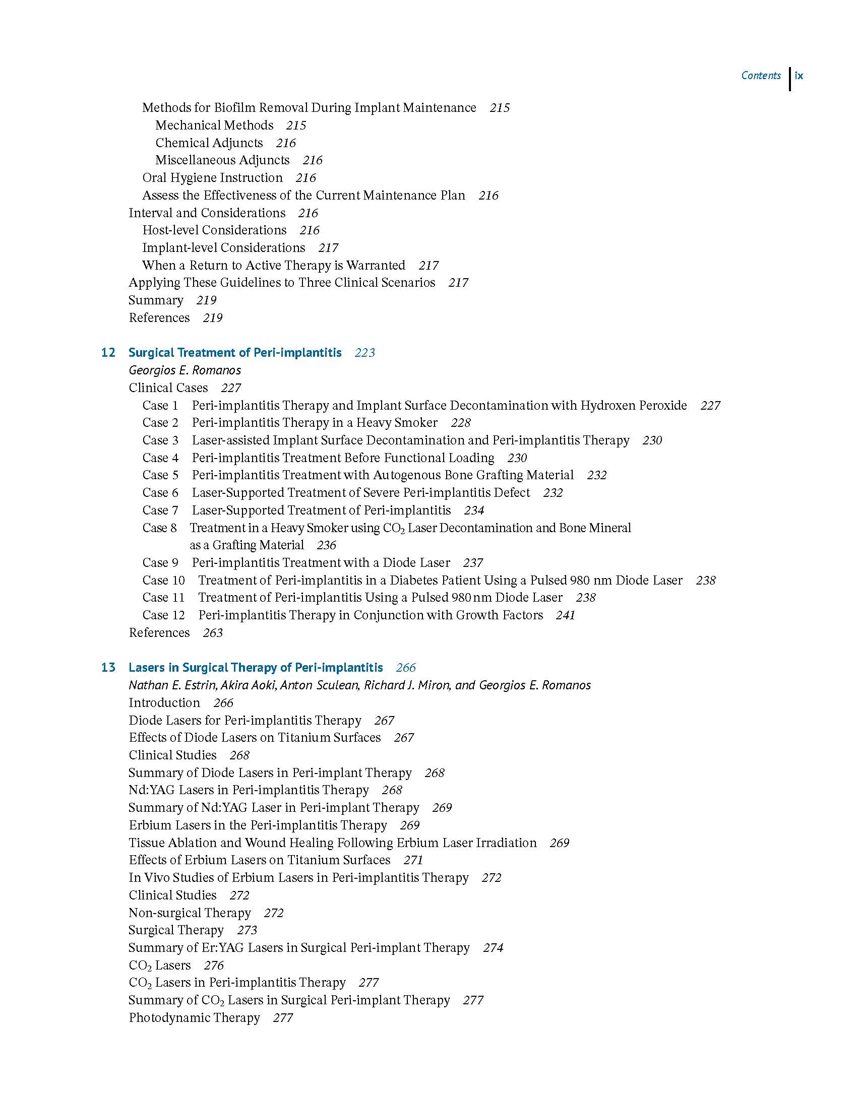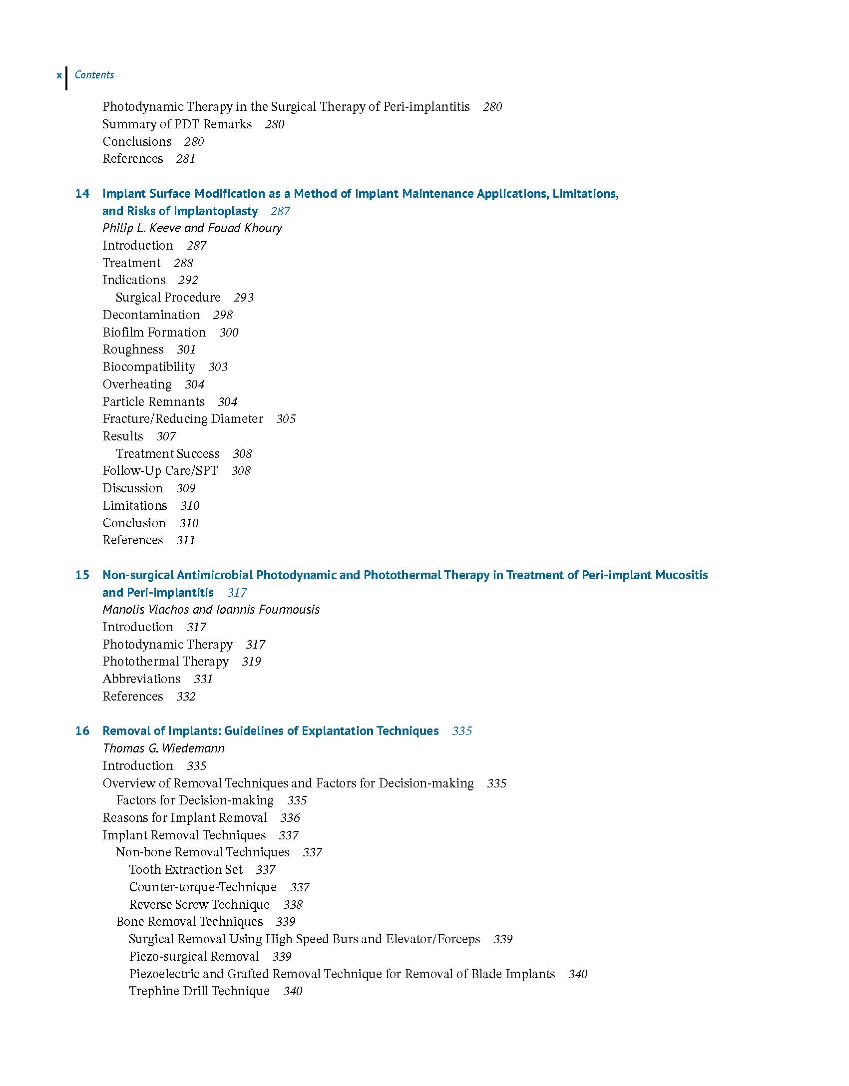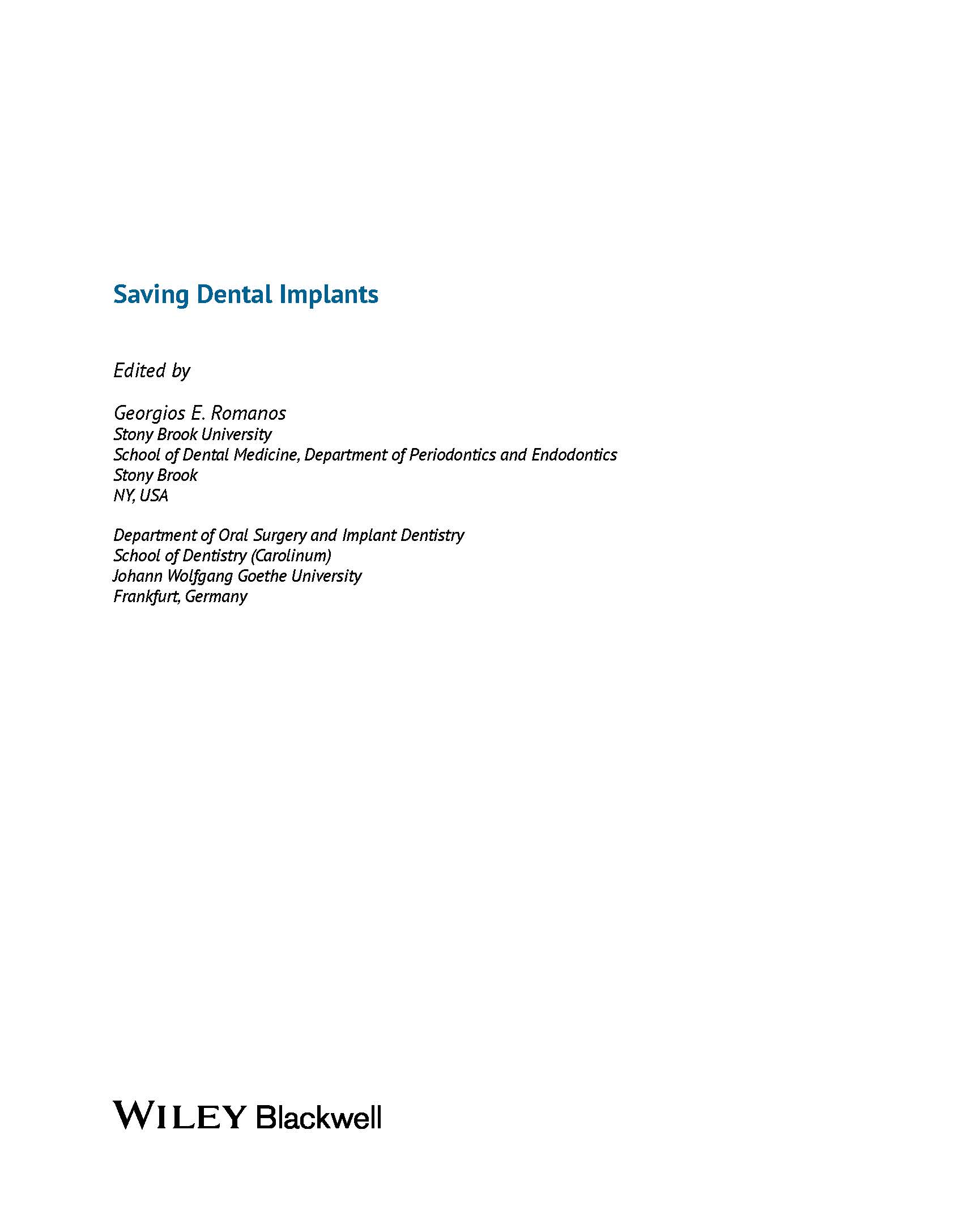 Saving Dental Implants presents established and emerging treatment concepts for the prevention and management of peri-implant complications, drawing on over two decades of clinical experience and expert contributions. The book emphasizes periodontal, prosthetic, and biomaterial considerations essential for achieving predictable, long-term functional and esthetic outcomes.